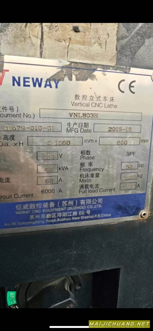 纽威VNL803H数控立车,回转直径1000,加工高度600,转. |